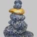 Deze porselein sculptuur heeft een tuit van een theepot als "sik " Het hoofd is beplakt met extreem kleine stukjes wit porselein.